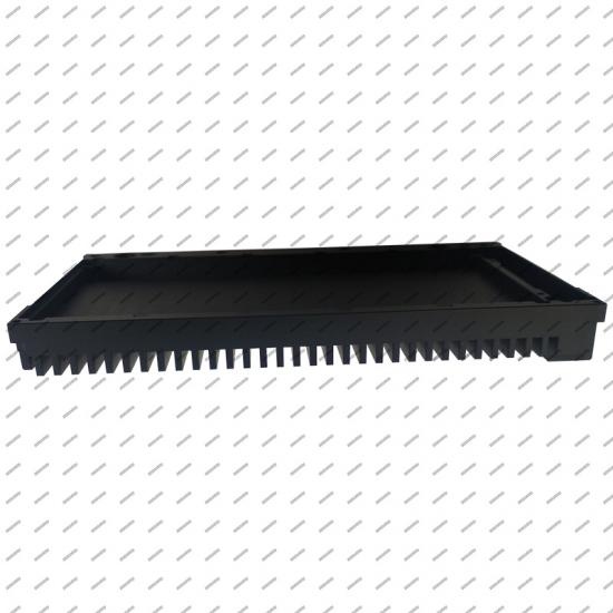 È uno dei componenti funzionali neri opachi e come piastre di base anodizzate nere opache utilizzate sulla saldatrice. La perpendicolarità è fino a 0,1 mm su entrambi i dati A e B. Inoltre, tutti i fori per le parti in alluminio anodizzato nero sono individuati entro ± 0,1 mm e sono molto rigorosi per la planarità della superficie senza difetti.