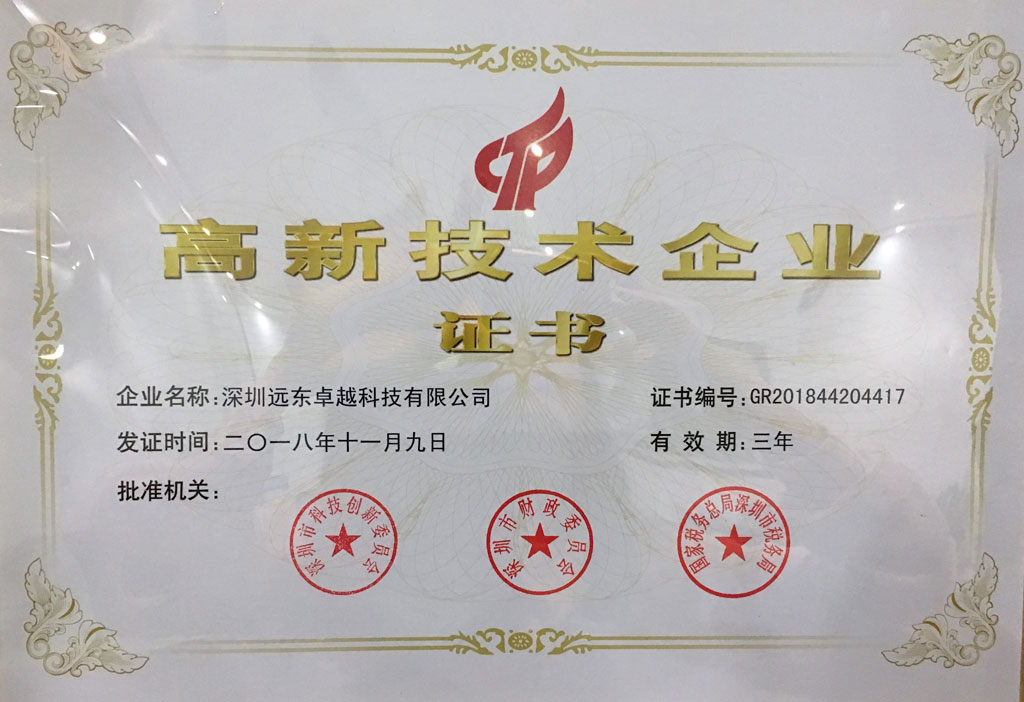 Riceviamo anche il supporto del governo dal certificato Hi-Tech nazionale approvato dal governo della città.